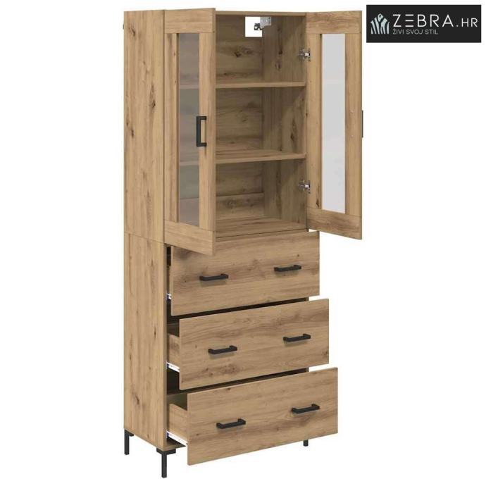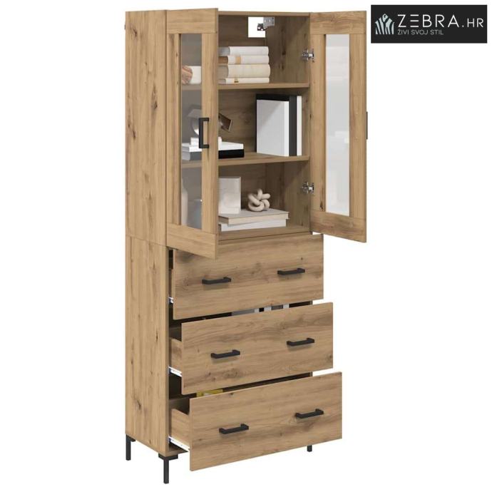 Izdržljivi materijali: Napravljen od konstruiranog drva i elegantnog stakla, ovaj namještaj spaja izdržljivost i stil. Staklena vrata dodaju eleganciju, omogućujući lak pristup sadržaju i njegovo izlaganje.