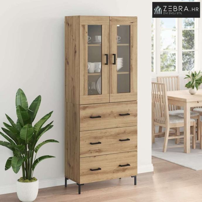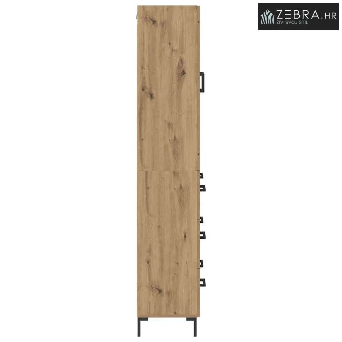 Ovaj visoki ormar je savršena dodatak svakom dnevnom boravku ili prostoru gdje su potrebna elegantna i efikasna rješenja za pohranu. S minimalističkim linijama, uklapa se u suvremeni stil nudi funkcionalnost koja štedi prostor. Zidna montaža omogućava uštedu podnog prostora, što ga čini odličnim rješenjem za manje prostorije. Kombinacija drva i stakla pruža čvrst i vizualno lagan komad koji je i funkcionalan i estetski privlačan. Ovaj ormar pomaže u organizaciji, čineći vaš prostor urednijim i privlačnijim.