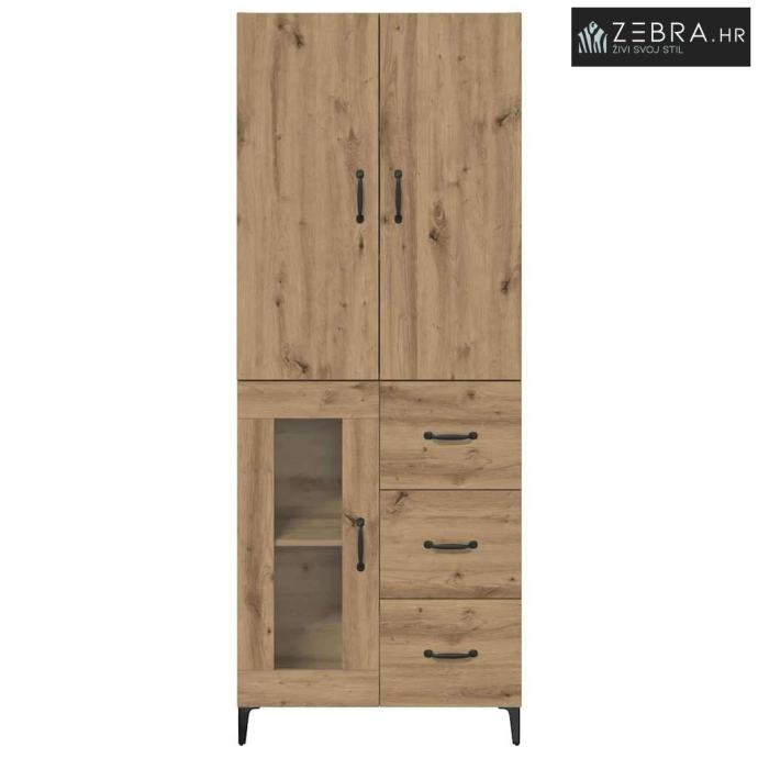 Ovaj visoki ormar spaja funkcionalnost i modernu estetiku, idealan je za različite unutarnje prostore poput dnevnih boravaka. Njegove čiste linije i minimalistički stil podižu prostor, a istovremeno dodaju dašak sofisticiranosti. Pravilnog je oblika i dobro je projektiran, pa je savršen za one koji žele i funkcionalnost i stil, uz praktično skladište.