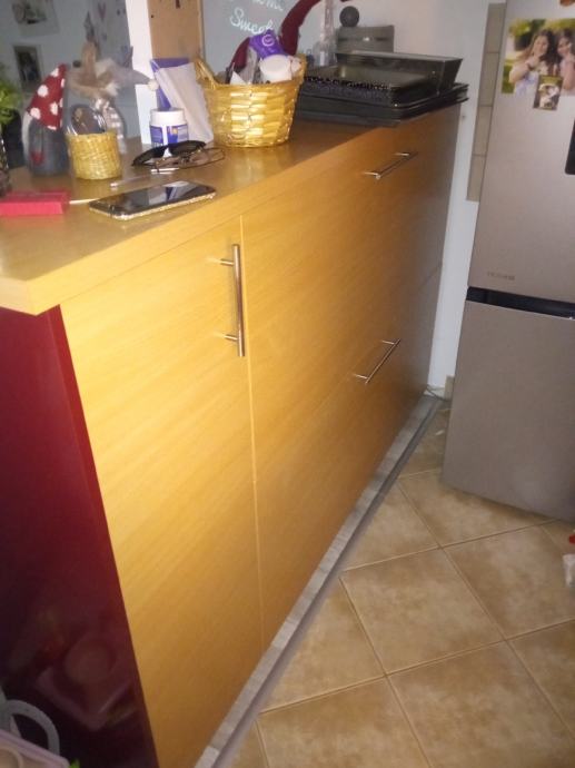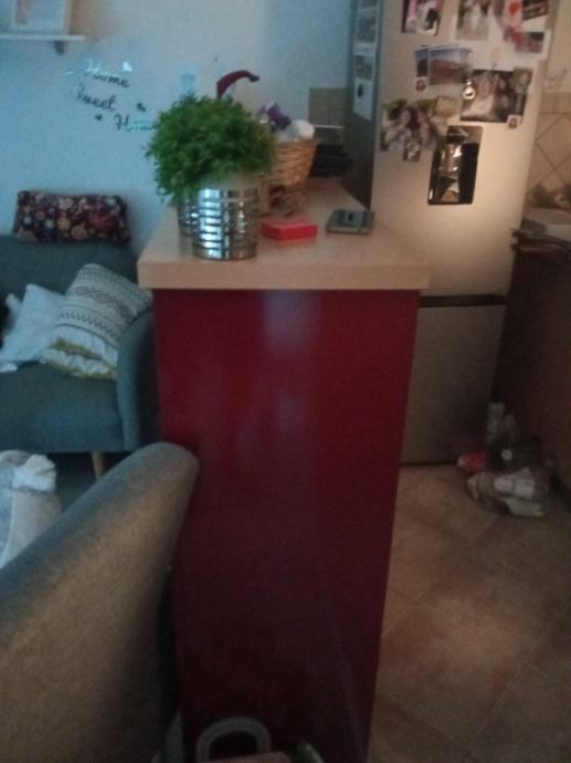 Šank za kuhinju ili dnevni boravak,rađen po mjeri,puno drvo sa unutarnje strane dvije police koje su zatvorene i posebno mjesto za kantu od smeća.