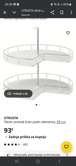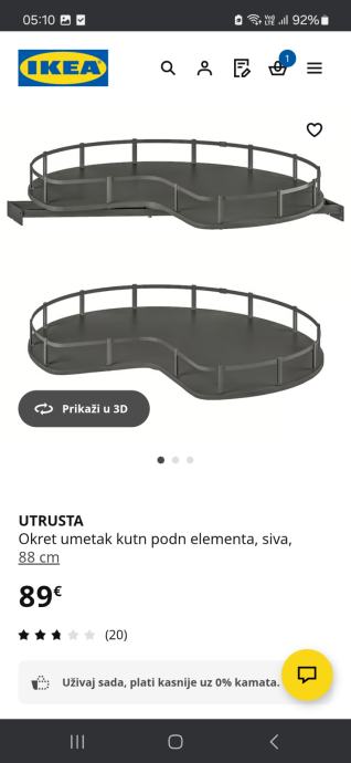 2 Okretna kutna umetka iz ikee UTRUSTA