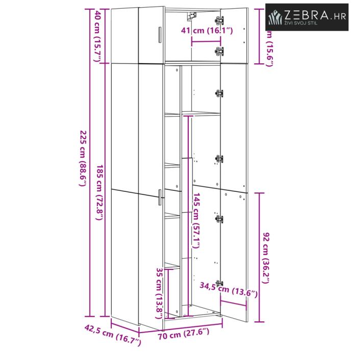 Sveukupne dimenzije: 70 x 42.5 x 225 cm (D x Š x V)