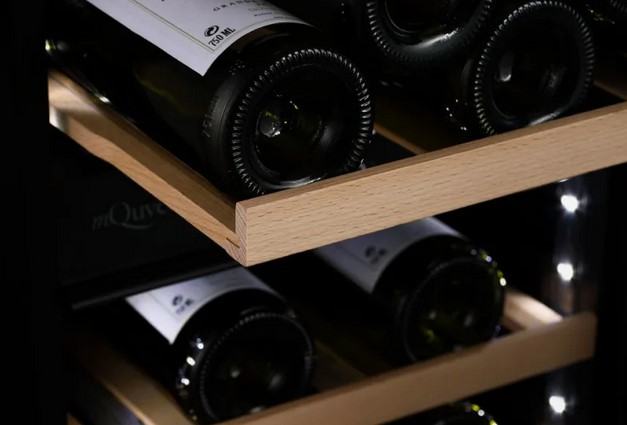 Hladnjak za vino ima drvene police za izlaganje vaših vina na ekskluzivan način. Hladnjak za vino ima dvije temperaturne zone koja se može postaviti između 5 i 20 °C i daje vam prostor za hlađenje 34 boca.