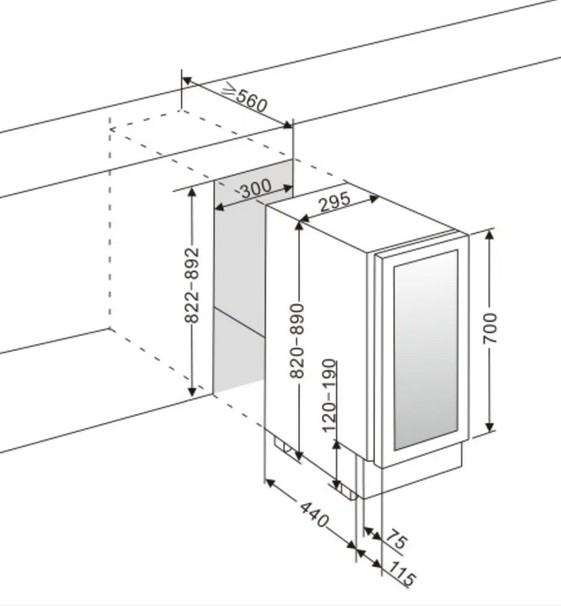 Podpultni ugradbeni hladnjak za vino WCS30ABPS-700