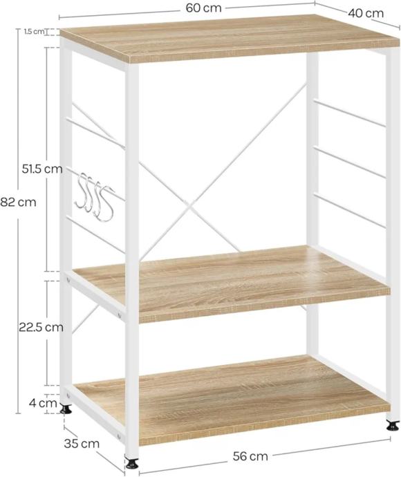 RGB9309 Kuhinjski stalak za police, držač za mikrovalnu pećnicu, metalna polica za pekare od drva i čelika s 3 police, cca. 60 x 39 x 74 cm