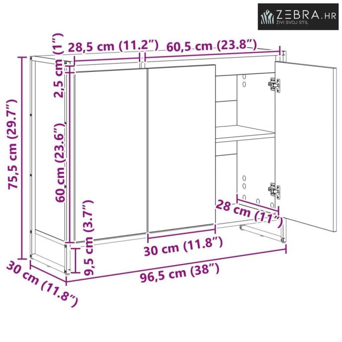 Ovaj stylish bočni ormarić savršeno se uklapa u svaki moderni dnevni boravak, nudeći dobru kombinaciju praktičnosti i izgleda. Napravljen od kvalitetnog konstruiranog drva, ovaj ormarić nudi funkcionalnost uz privlačan industrijski stil koji može osvježiti vaš prostor.