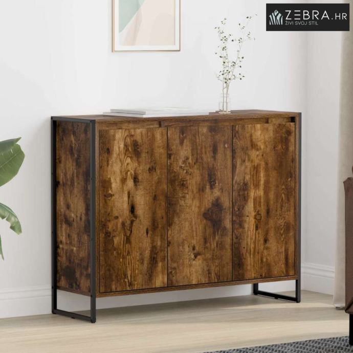 Izrada od konstruiranog drva Napravljen od kvalitetnog konstruiranog drva, ovaj ormarić osigurava čvrstoću i dugotrajnost. Korisnici mogu biti sigurni u njegovu otpornost na svakodnevno korištenje, dok i dalje izgleda odlično. Industrijski dizajn Moderni industrijski stil, s neutralnim bojama i čistim linijama, lako se uklapa u razne interijere, od urbanog chic do suptilnog luksuza. Prostrana pohrana Ovaj ormarić nudi dovoljno prostora za organizaciju stvari i drži tinežne predmete pod kontrolom. Idealno za dnevni boravak ili zabavni sustav, naglašava funkcionalnost i urednost. Čvrsta konstrukcija Snažan i stabilan, ormarić je napravljen da izdrži i često korištenje. Korisnici će cijeniti njegovu ravnotežu između stila i izdržljivosti, pružajući dugotrajnu kvalitetu. Samo za unutarnju upotrebu Ovaj ormarić je savršeno rješenje za unutarnji prostor, dodajući udobnost i funkcionalnost bez gubitka stila. Idealna je za unijeti industrijski karakter u unutarnje prostore. Boja: Dimni hrast
