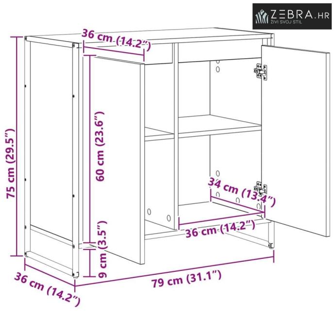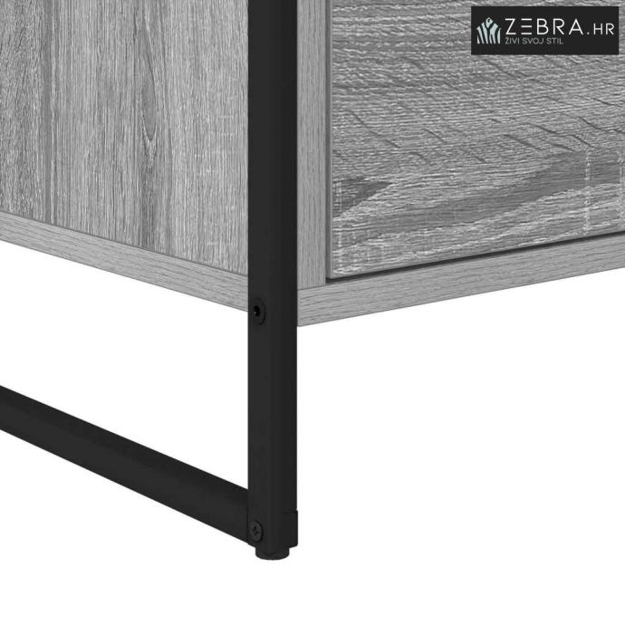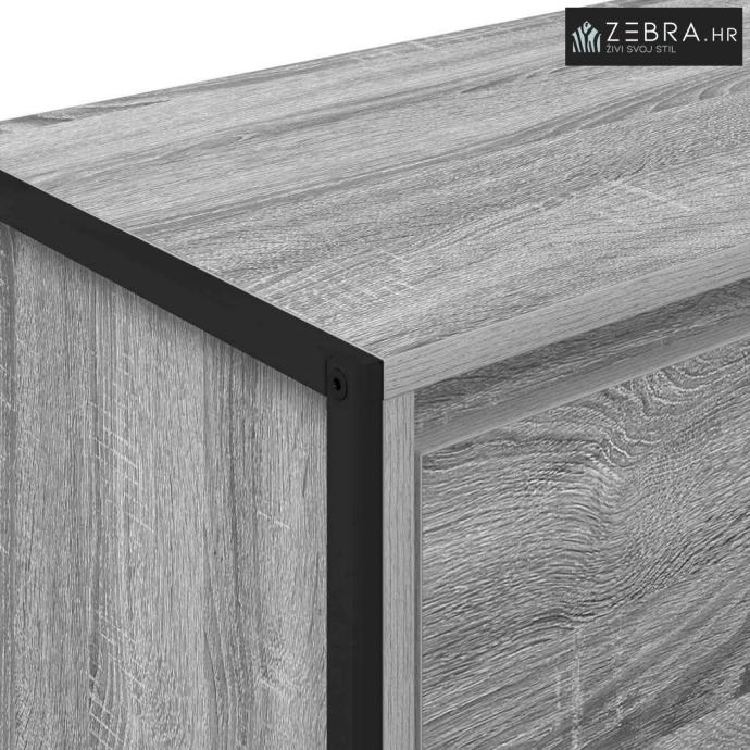 Industrijski dizajn: Ova bočna komoda povezuje rustikalne detalje s modernim linijama, čineći je savršenim komadom za razne stilove interijera. Kontrast između konstruiranog drveta i metalnih nogu donosi harmoničnu ravnotežu. Konstruirano drvo: Ova komoda je od konstruiranog drveta i pruža pouzdanost i izdržljivost. Trajan materijal drži lagani profil za lakše pomicanje, a površina je otporna na habanje. Čelične noge: Stabilne čelične noge daju potporu komodi i štite je na neravnim podovima. Minimalistički dizajn olakšava čišćenje ispod, što pomaže u jednostavnom održavanju. Prostrana pohrana: Komoda ima puno odjeljaka, pomaže vam da organizirate prostor. Unutrašnjost je osmišljena za efikasno korištenje prostora, idealna za odlaganje kućnih stvari. Detalji o sklapanju: Isporučuje se kao jedna jedinica, sklopiti je mogu dvoje ljudi s odvijačem, pa je lako postaviti i prilagoditi prema potrebama. Boja: Siva sonoma