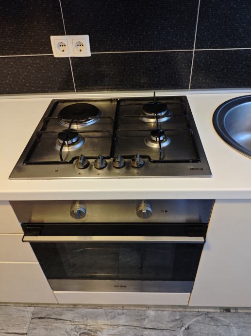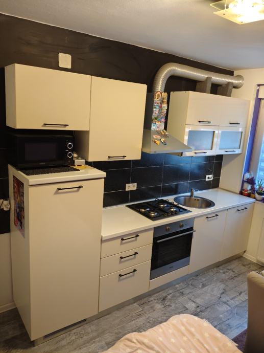 Prodajem kuhinju sa aparatima, hladnjak volumena 134l (hladnjak 117l, zamrzivač 17l), pećnica na struju, ploča za kuhanje, 3 plin, 1 struja, napa, sudoper i slavina (mikrovalna nije u prodaji)
