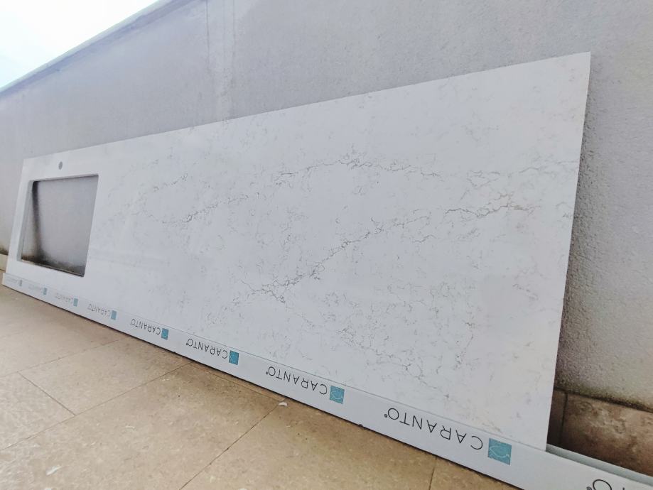 Prodajem novu kuhinjsku radnu ploču od quartza, marke Caranto iz Venecije, Italije. Nažalost naručili smo krivu duzinu (1cm kraću) Može se dodatno rezat. Veličina: duzina 222 cm x širina 63 cm, debljina 2 cm. Boja Linosa Q85. Izrez je za sudoper od 70 cm s lijeve strane. Vise o Quartz materijalu si možete pročitat sa stranica tvrtke Caranto. Plaćeno €1600. https://www.caranto.com/en/caranto-quartz