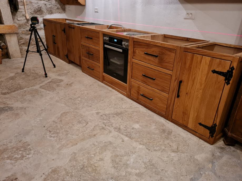 Hrastova kuhinja izrađena u rustikalnom stilu.