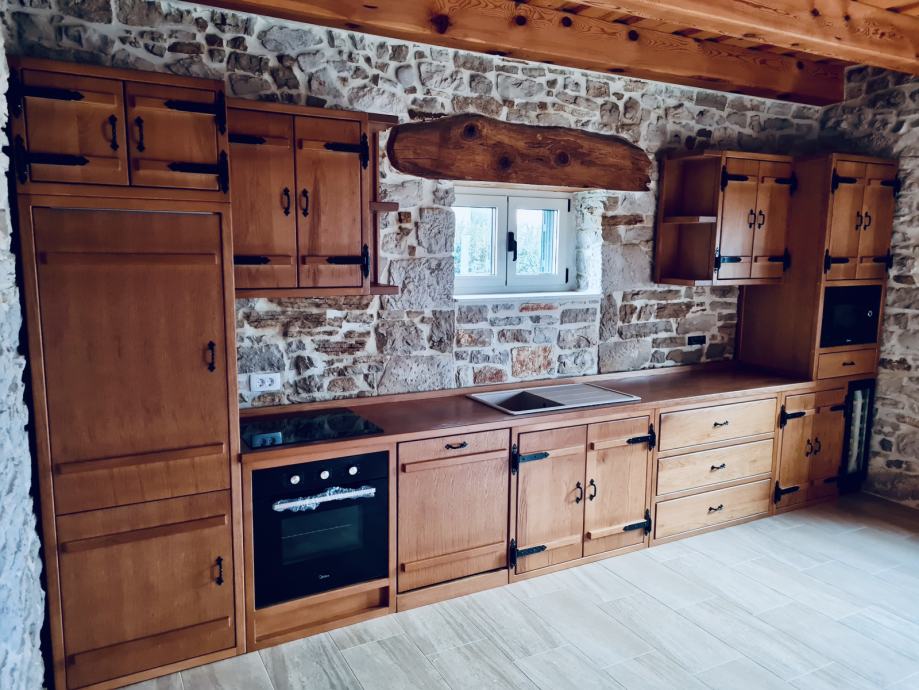 Izrađene od punog hrastovog drveta, rustikalni stil.