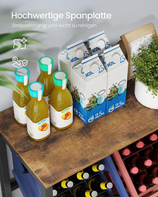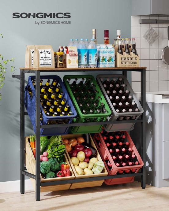 Višenamjenska: Polica nije prikladna samo za gajbe za pića, već se može kombinirati i s drvenim gajbama, metalnim košarama i plastičnim kutijama za pohranu voća, povrća, grickalica itd.