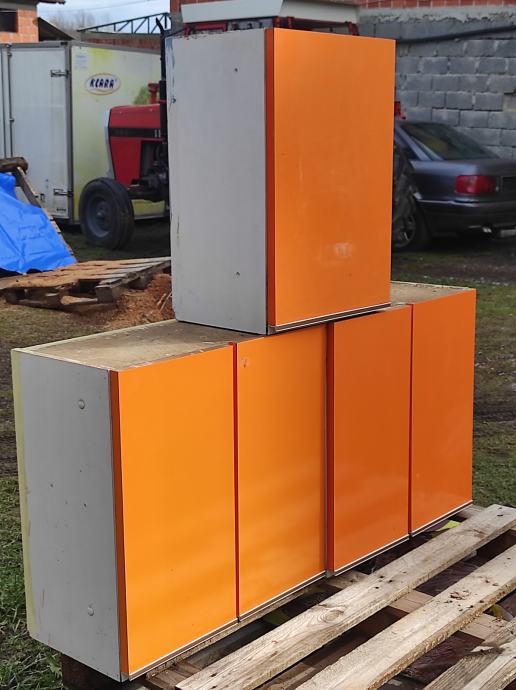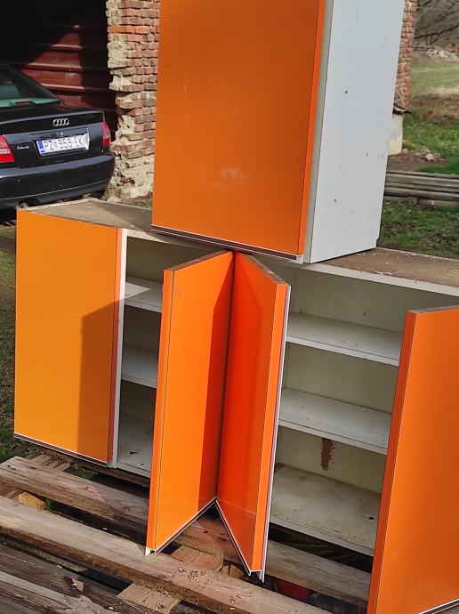 Tri narančasta elemenata u dobrom stanju.Mjere su dva elementa po 60 cm dužine i 60 visine ,sa dvojim vratima i jedan od 40 cm širine sa jednim vratima i svi su 30 cm dubine,ukupno su dugi 1 metar i 60 centimetara,moguce kupiti samo jedan od tri elementa ili dva,nemora kupac nuzno kupiti sva tri elementa,za svaki element tražim 25 eura,ako netko kupi sve u kompletu moguce korigirati cijenu.Za sve informacije nazovite na broj 097-660-1365 ili pošaljite upit na Viber ili Njuskalo, slanje u dogovoru sa kupcem,ima raznih nacina npr GLS ILI SL.VIDI SLIKE!!