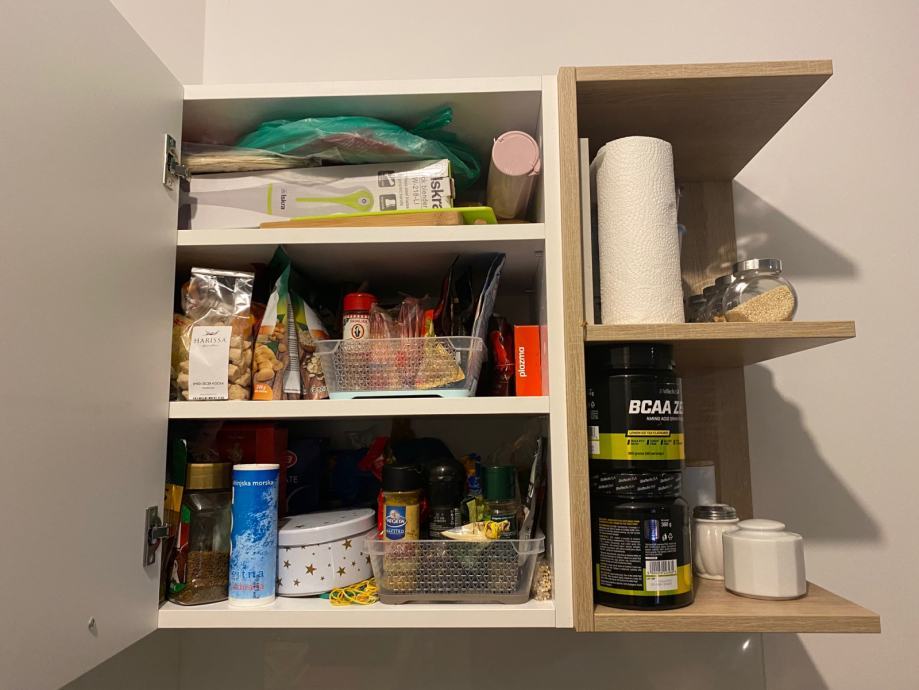 Prodajem dva viseća elementa, koji nam se ne uklapaju u novu kuhinju. Namještaj je rađen po mjeri, materijal koji je korišten je elgrad (acryl hg bijela/18 iverala mat korpusno,fronte iveral i H1145 ST10 Hrast Bardolino natur). Dubina prvog i drugog elementa sa slike je 35cm. Visina oba dva elementa je 59,5cm.Dužina prvog elementa sa slike je 90cm, dužina drugog je 85cm.
