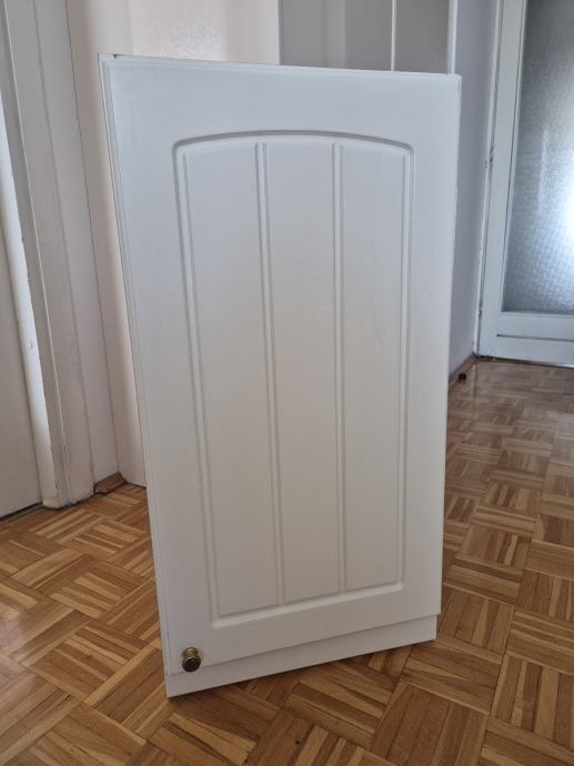 Prekrasan viseci drveni kuhinjski element, bijele boje. Oplemenjena iverica debljine 16mm, masiv bukva, mediapan, dimenzije 400x780x296mm.