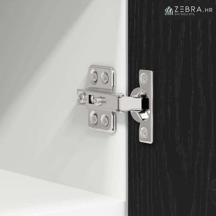 Njega i održavanje: Da bi dugotrajno izgledao lijepo, jednostavno obrišite ormarić vlažnom krpom kako biste održali njegovu otpornu završnu obradu. Izbjegavajte jake kemikalije i koristite nježne metode čišćenja kako biste sačuvali njegov moderan izgled i funkcionalnost. Boja: Crni hrast i bijela