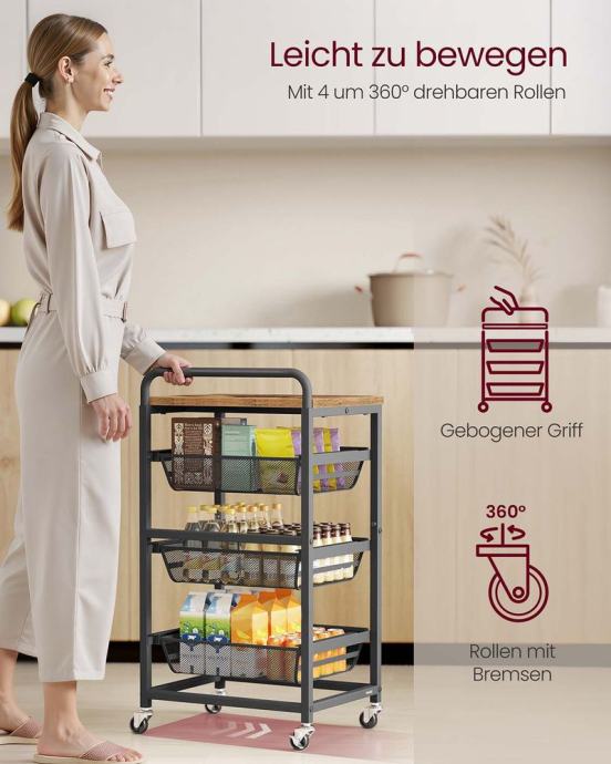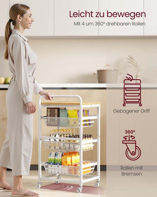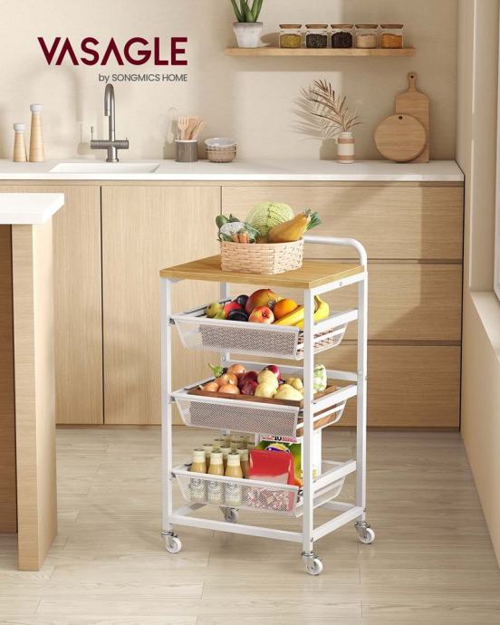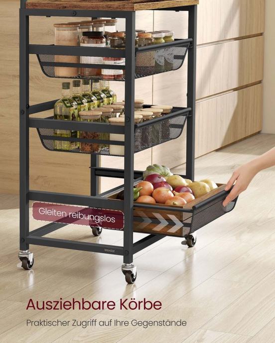 Jednostavan pristup: Ova kuhinjska kolica s 5 razina opremljena su s 4 izvlačne košare, idealne za brzi pristup grickalicama, voću, povrću, bocama s vodom i drugim predmetima.