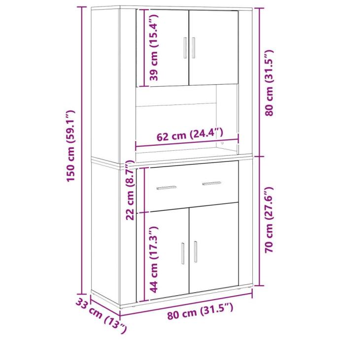 Promišljen dizajn: Izrađen za praktičnost, ovaj visoki ormar ima vrata i ladice koje se glatko otvaraju, olakšavajući pristup onome što trebaš. Njegovo pametno raspoređivanje omogućava da sve bude lako dostupno, čineći ga neizostavnim dijelom tvog doma.