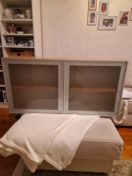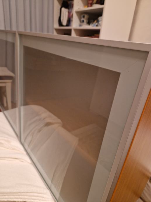Prodajem zidnu vitrinu s aluminijskim vratima i mliječnim staklom.