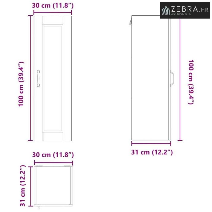 Sveukupne dimenzije: 30 x 31 x 100 cm (D x Š x V)