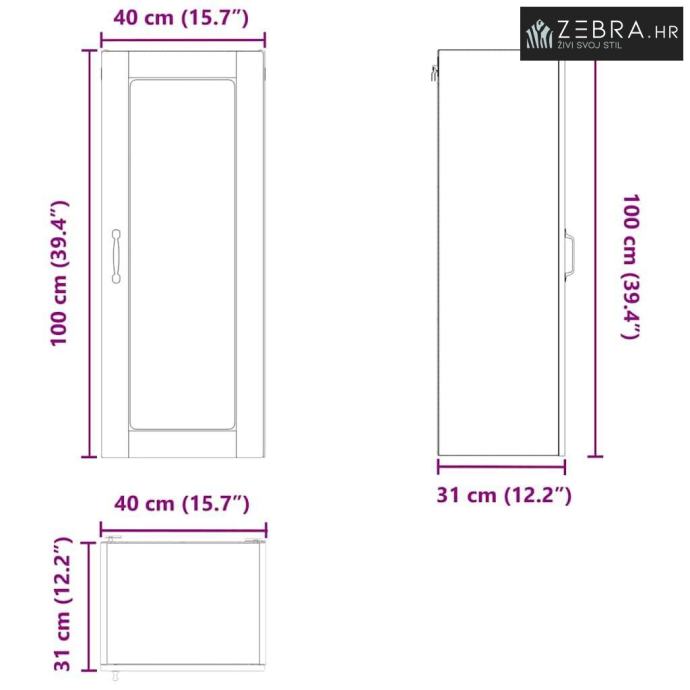 Sveukupne dimenzije: 40 x 31 x 100 cm (D x Š x V)