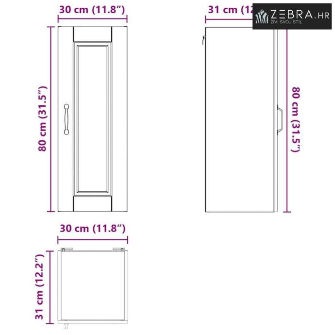 Sveukupne dimenzije: 30 x 31 x 80 cm (D x Š x V)