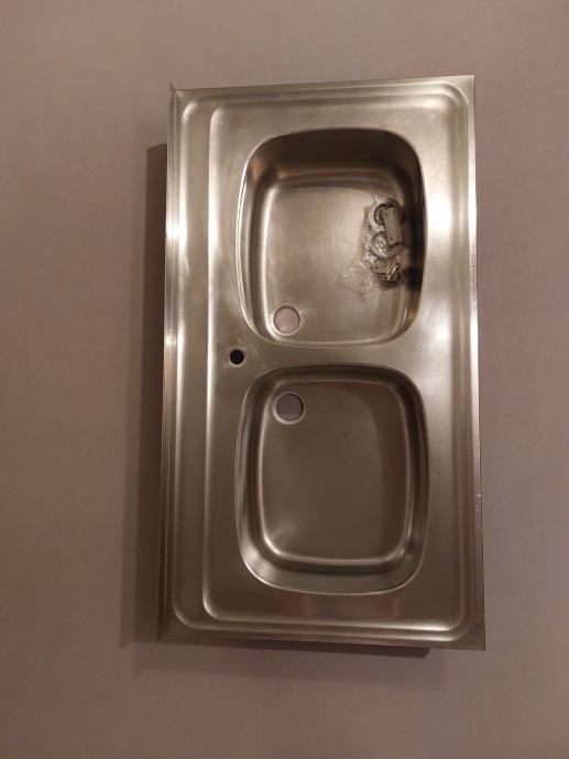 Kuhinjski nasadni sudoper s 2 kade, inox, uključeni pripadajući vijci i sl., dimenzije 100 x 55 cm, odlično sačuvan