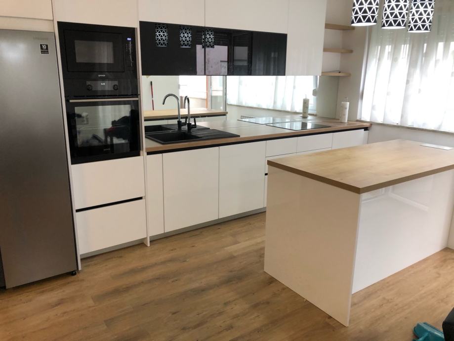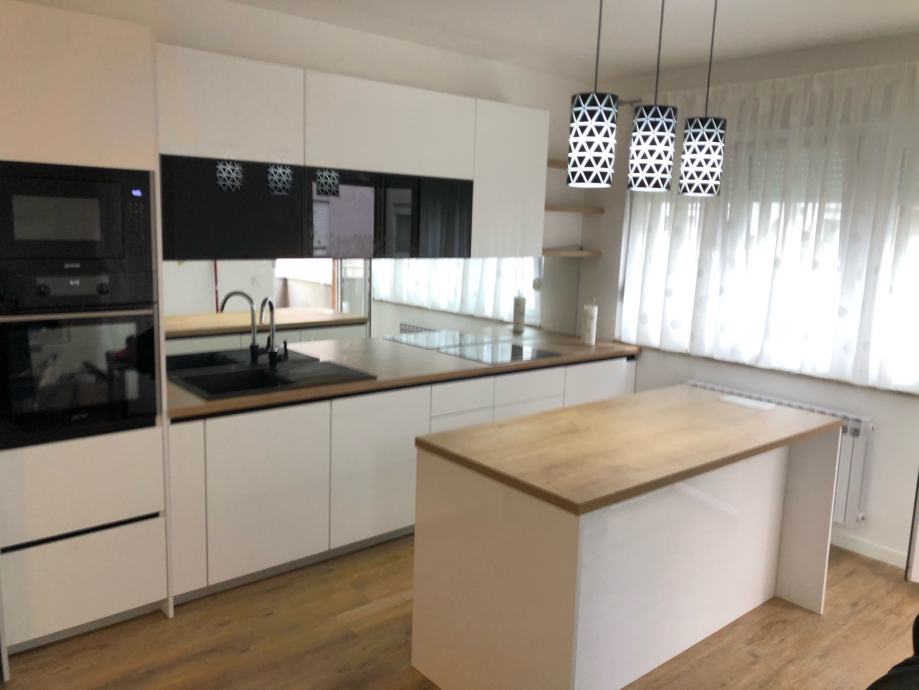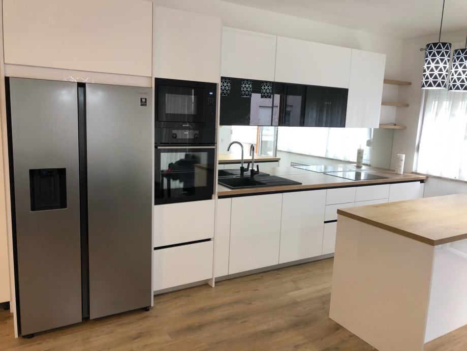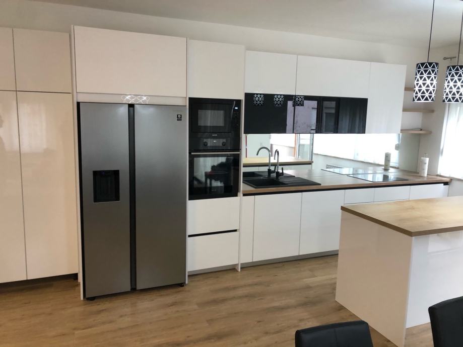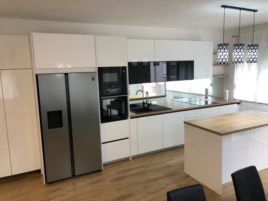 Kuhinja bjela visoki sjaj lakirani medijapan zidna obloga ogledalo
