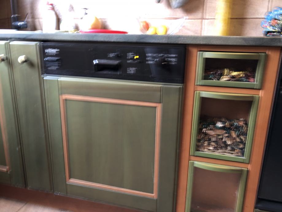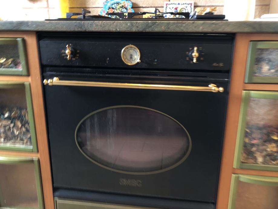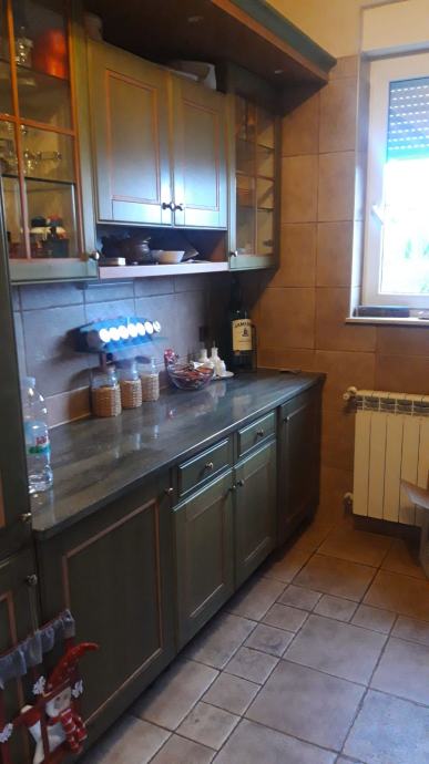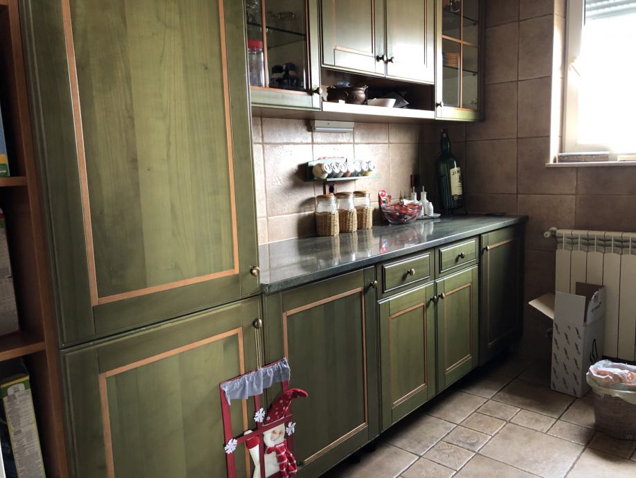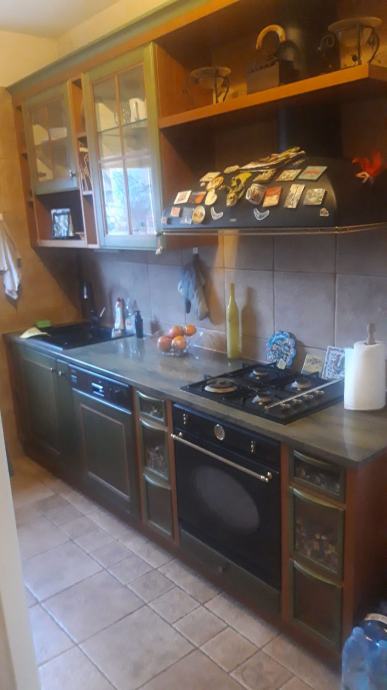 Kuhinja Cadoro rađena po mjeri ali lako prilagodljiva svakom prostoru, sastoji se od dvije strane, svaka dužine 270 cm, materijal je drvo a radna ploča kamen otporan na udarce i temperature. Kuhinja je u izvrsnom stanju i prodaje se s SMEG aparatima ( pećnica, napa i štednjak) te perilica za suđe Miele.