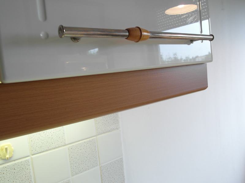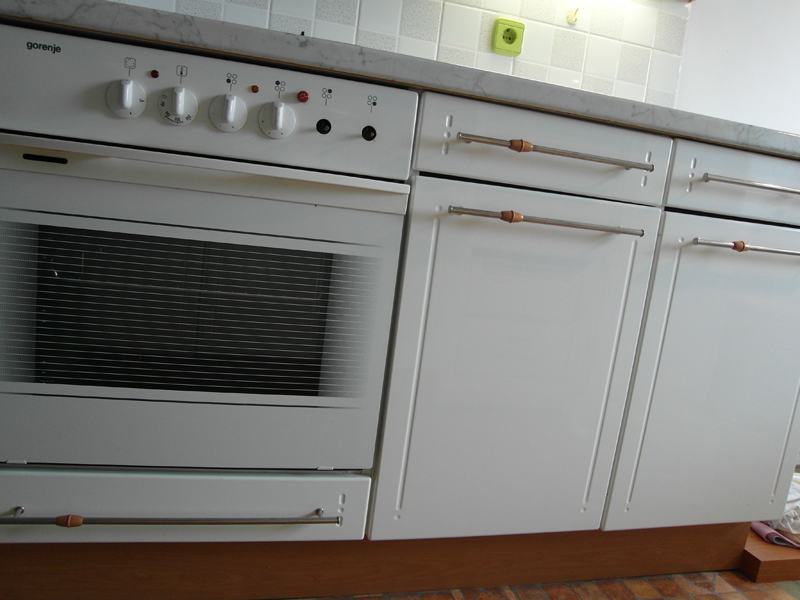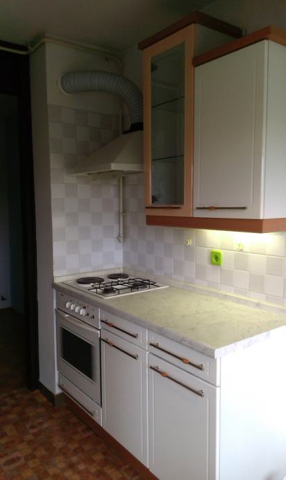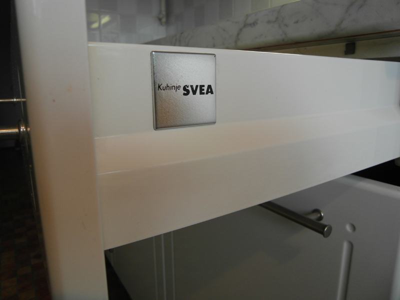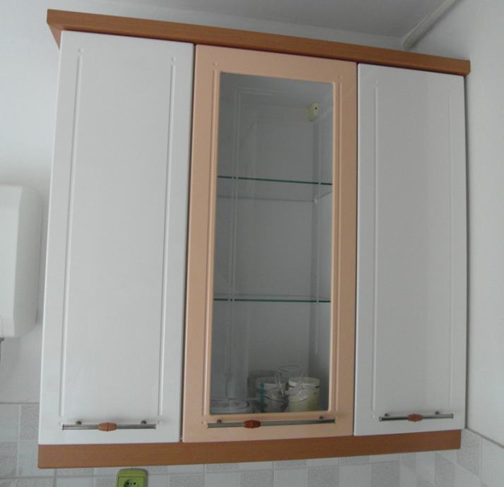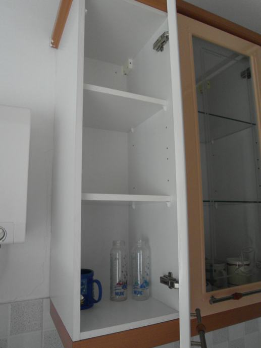Kuhinja je u odličnom stanju, okov je Grass, niti jedna vrata ne vise niti mrvicu, niti jedan pant nije nimalo raskliman. Elementi imaju donji i gornji vijenac. Stakleni elementi imaju staklene police.