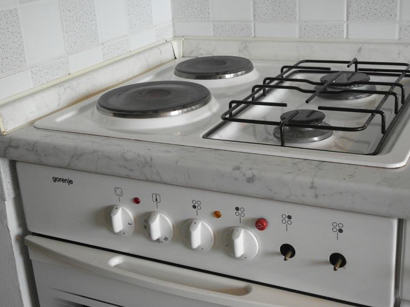 Uz drveni dio prodaju se i uređaji: napa Whirlpool s odvodom na dimnjak, ugradbeni štednjak Gorenje 2 struja + 2 plin (plin nije nikada korišten), sudoper sa sifonom. Ugradbeni uređaji nisu uključeni u cijenu.