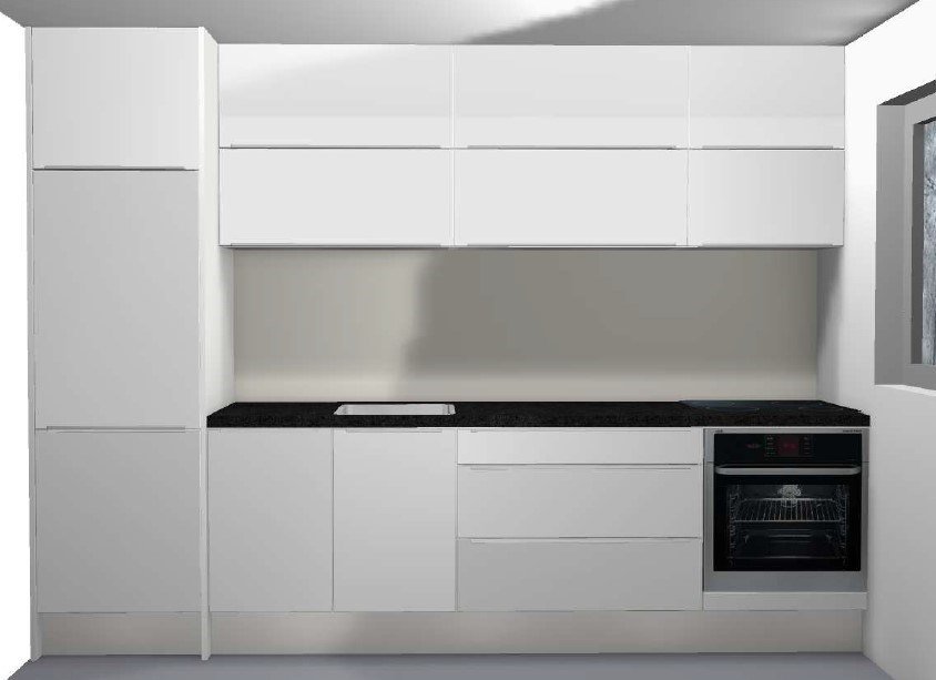 KUHINJA dim .300 cm KOMBINACIJA BIJELI IVERAL SA SIVOM RADNOM PLOČOM DEBLJINE 38 mm.