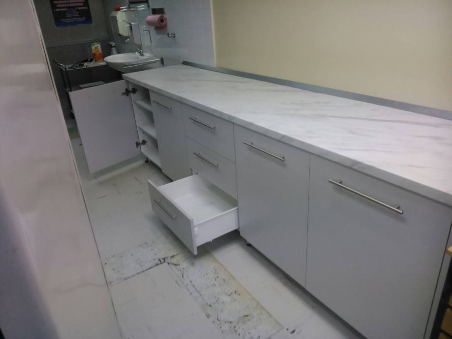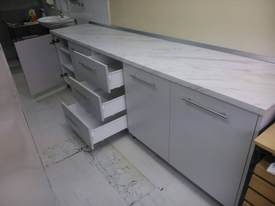 * dijelovi: sastoji se od 2 elementa širine 105 cm sa 2 police te u sredini je ladičar od 60cm sa 3 ladice