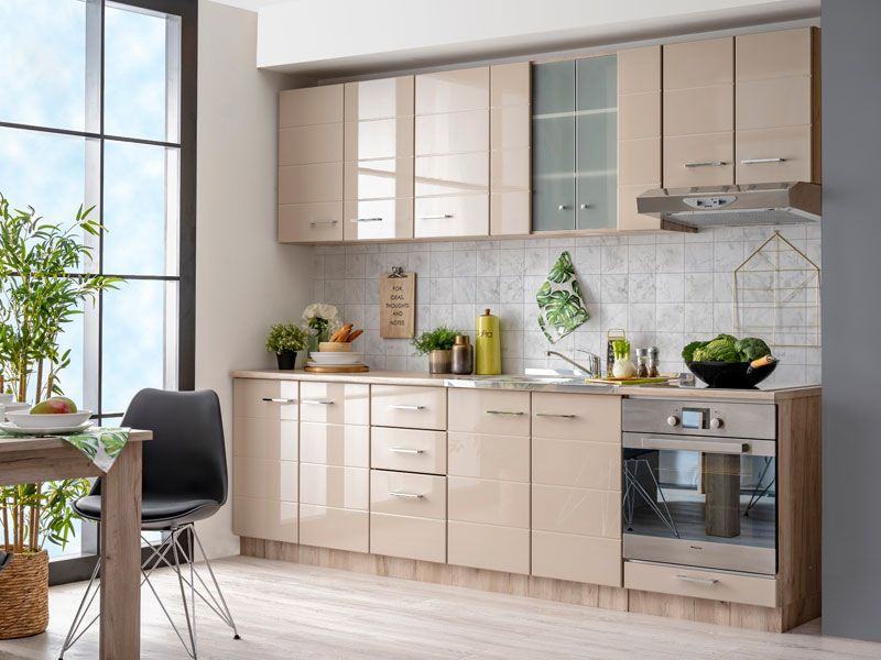 Kuhinja DIANA 200cm, u dekoru sivog hrasta i pijesak lak folije sa 3D MDF aplikacijom na frontovima, osmišljena je da zadovolji funkcionalne i estetske zahtjeve u opremanju kuhinjskog interijera. Jednokrilni i dvokrilni viseći elementi, kao i donji dvokrilni elemetni sa funkcionalnim ladicama, pružaju dovoljno prostora za odlaganje kuhinjskog inventara.