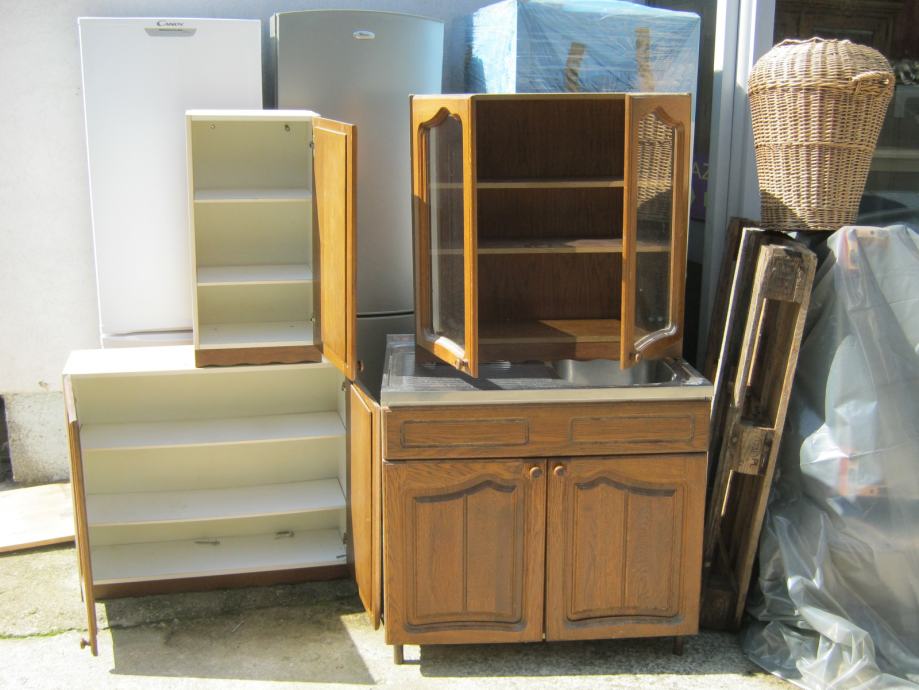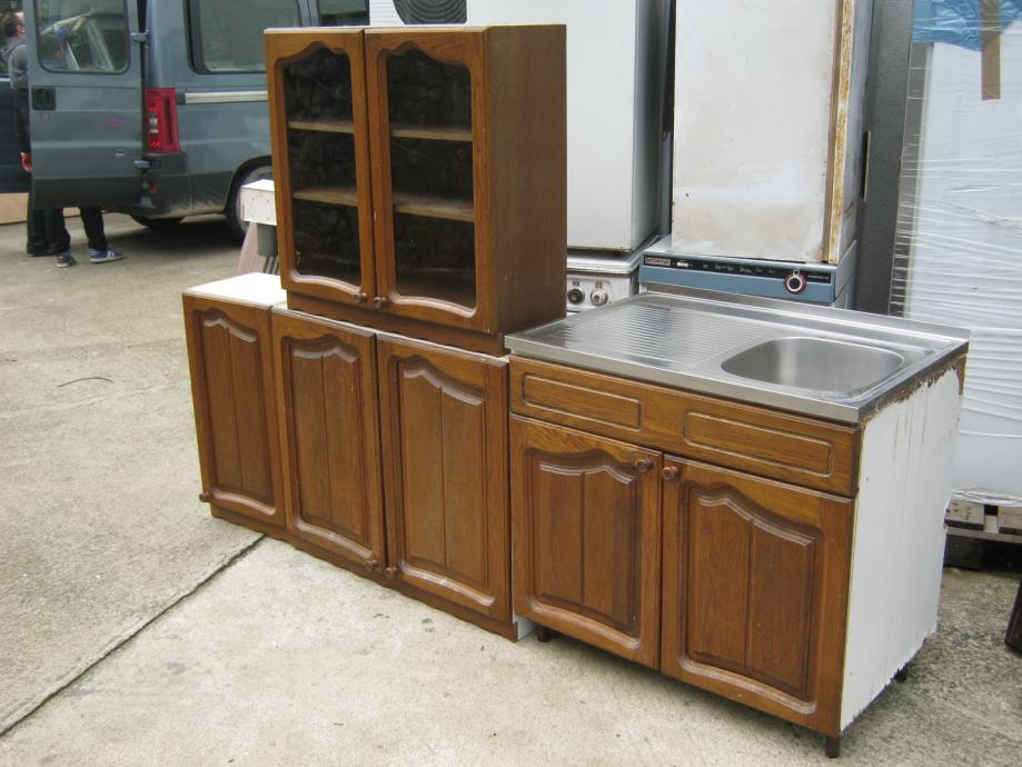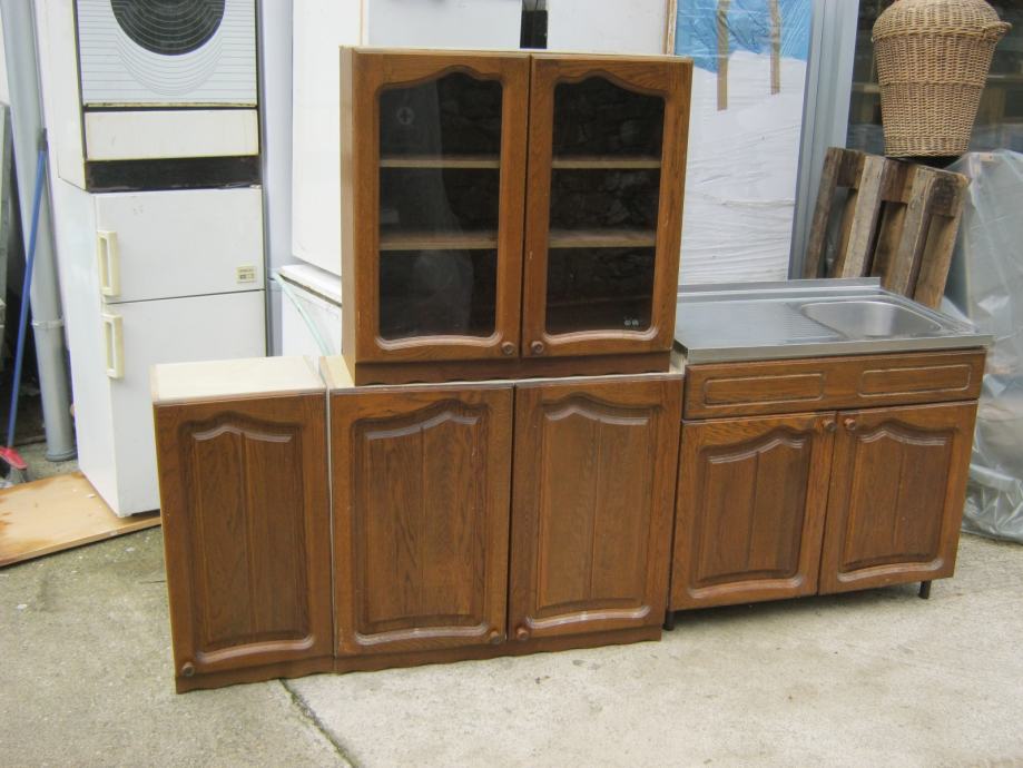 Kuhinjski sudoper i tri viseća elementa sa vratima od punog drveta hrasta.