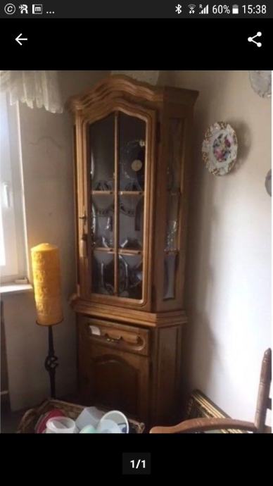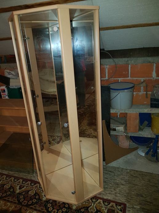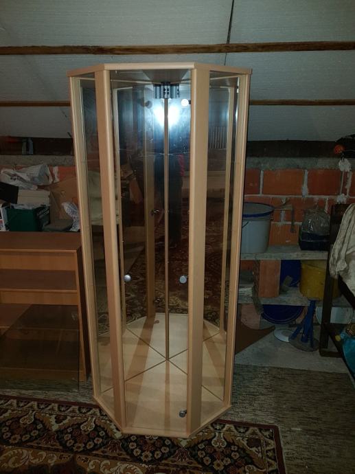 Vitrina kutna svjetli hrast ili bukva 60x60 cm visina ca 160 cm 600 k