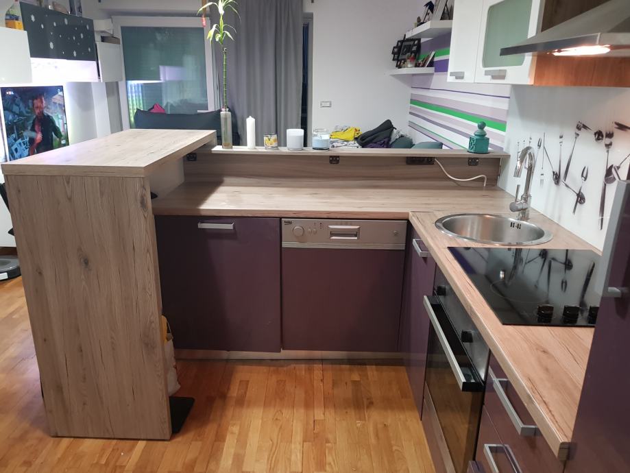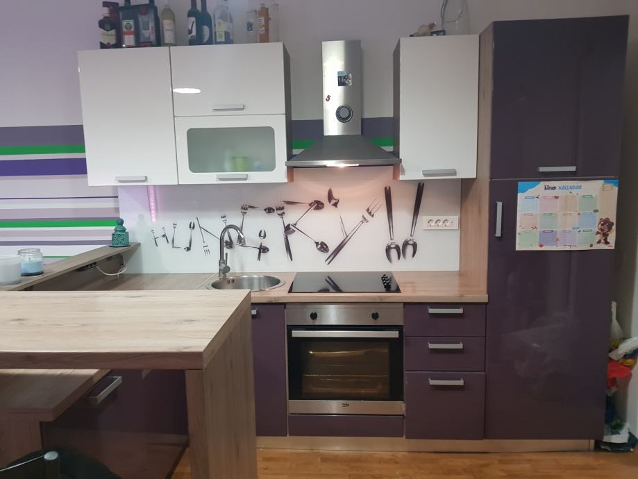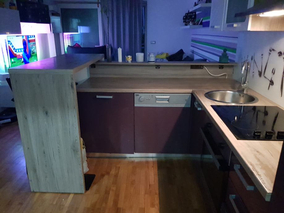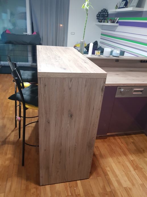 Kuhinja kupljena u Lesnini prije 3 godine dobro ocuvana. Kompletna kuhinja sa svim ugradbenim elementima i uređajima,perilica,hladnjak s ledenicom,ugradbena pecnica,indukcijska ploča, napa koja nije korištena...sve u odlicnom stanju. Visoki sjaj. Dimenzije 210X180X215 u L. Te barski stol dimenzije 120x113 u boji elemenata kuhinje(drvo). Za dodatna pitanja slobodno kontaktirajte. Moguc dogovor oko cijene.