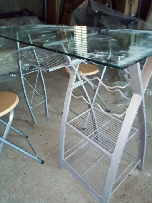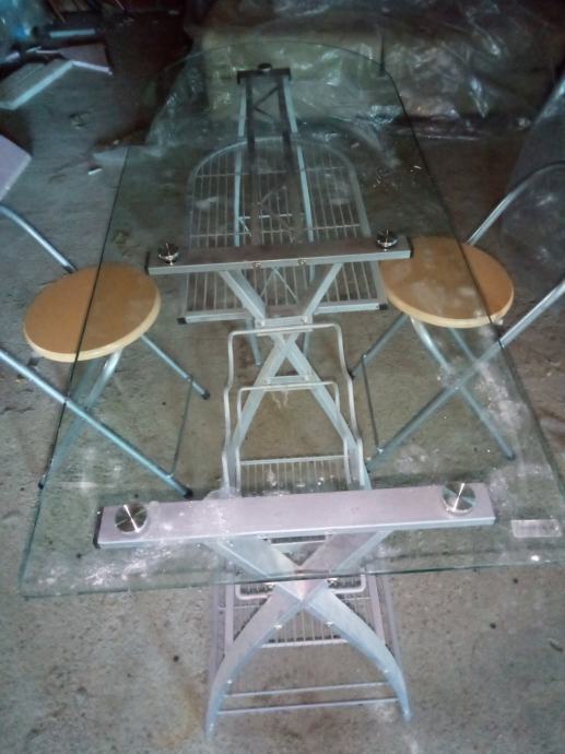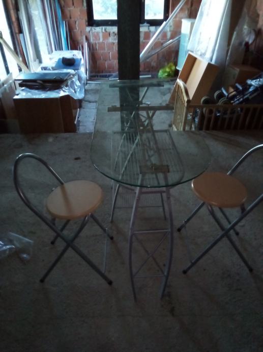 Stakleni stolič sa dvije stolice.ploča staklena 120 cm x 45 cm.postolje kromirano.kao novo očuvanomogučnost dostave.
