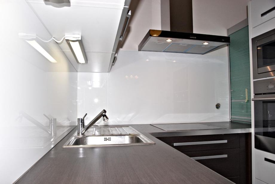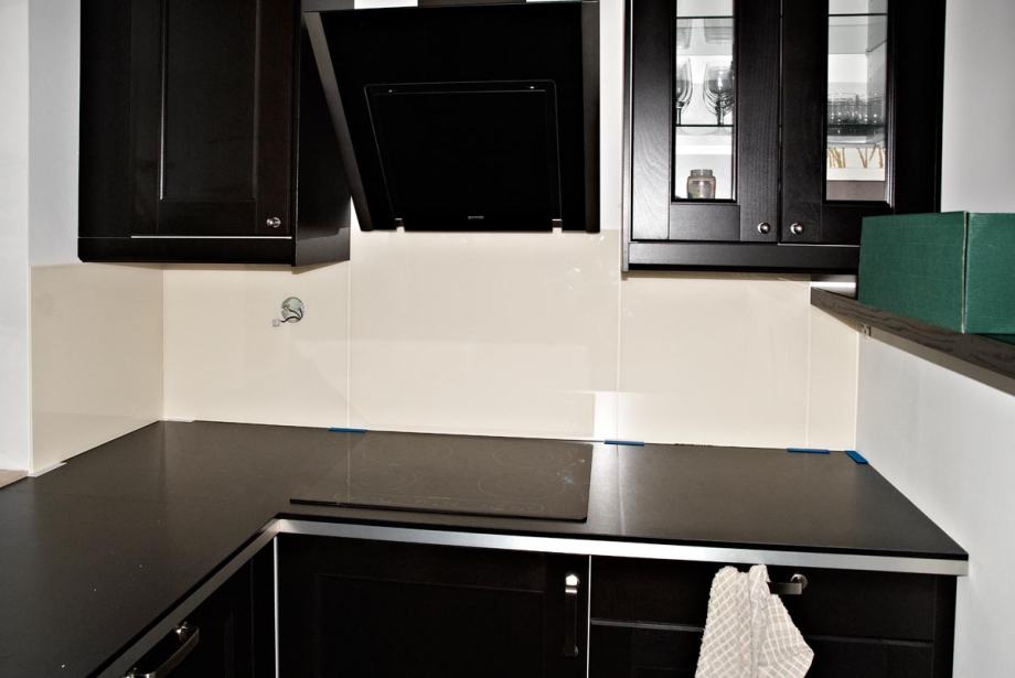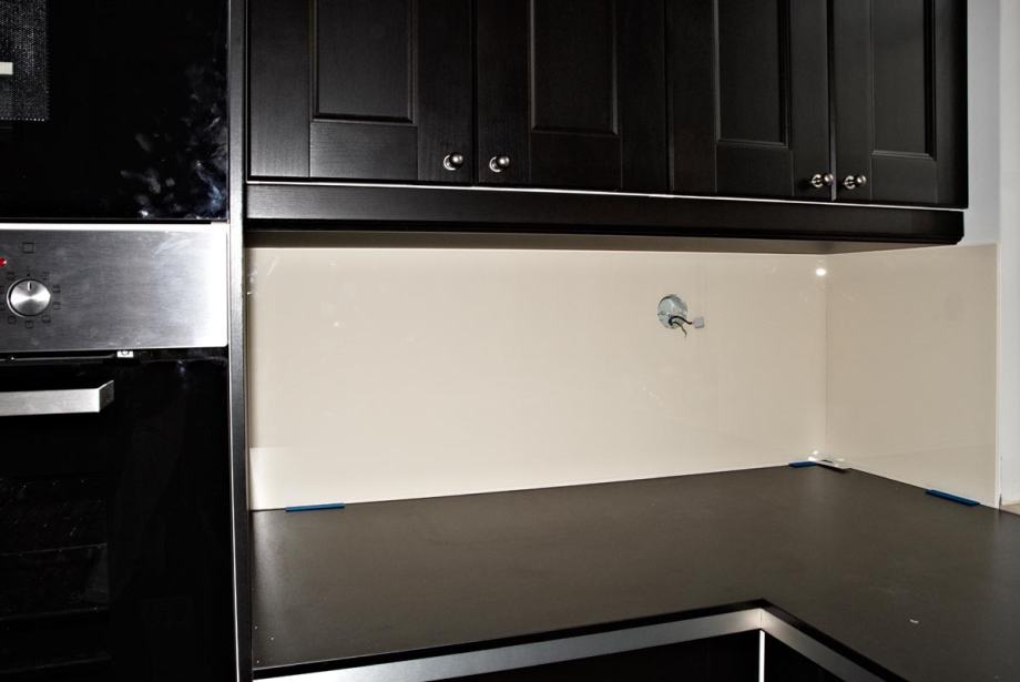Staklo za kuhinjske zidove. Lacobe Pearl White. Izmjera i montaža.
