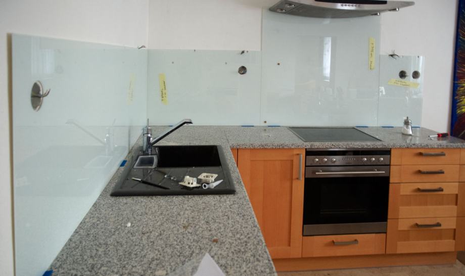 Kaljeno staklo za kuhinjske zidove. Izrada na mjeru, izmjera, montaža.
