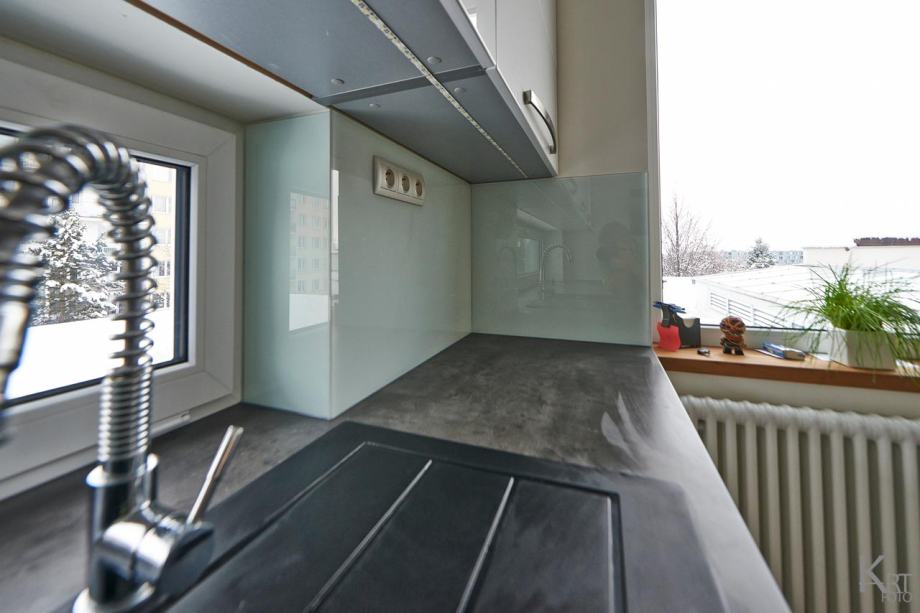 Kaljeno staklo za kuhinje, postavlja se iz jednog ili više segmenata. Ploče se spajaju stično, bez fugiranja ili silikoniranja.