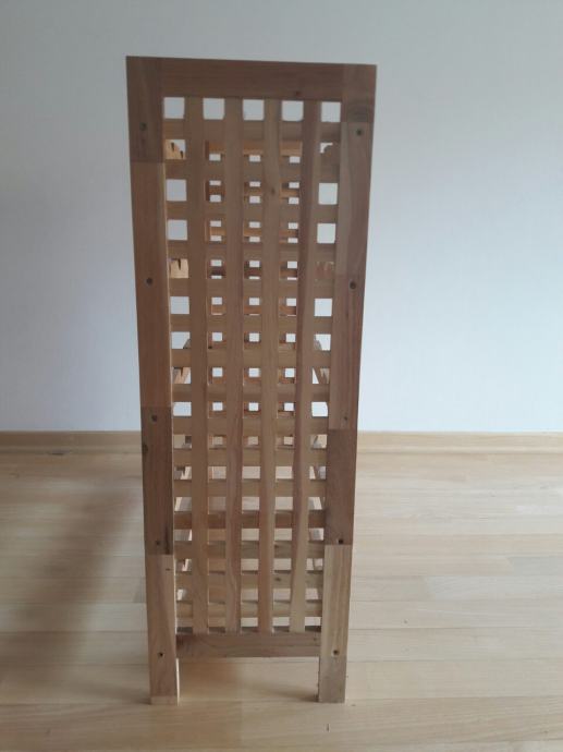 Prodajemo drveni stalak za 25 boca, dimenzija v/š/d = 76/23/64cm, posve očuvan i stabilan.
