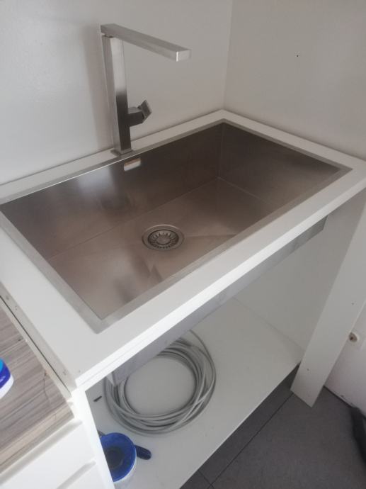Kupljen jer smo renovirali kuhinju i ja sam sama izabrala sudoper i kupila ali moja mama ga ne želi. Stolar ga je namontirao ali ona je sad stopirala daljnu montažu. Kaže da je to sudoper za restoran i da joj je prevelik.............