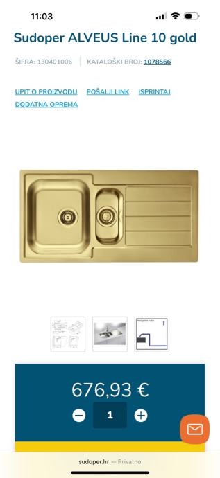 Prodajem novi zapakirani gold monarh sudoper. Placen 660 eur. Moguc dogovor oko cijene.