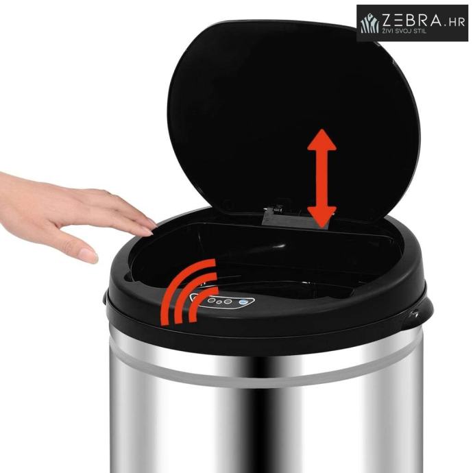 Ne morate dirati poklopac kako biste bacili smeće uz našu posebno dizajniranu automatsku kantu za otpad od 50 L sa senzorom. Poklopac se automatski otvara kad senzor otkrije objekt u rasponu od 20 cm od kante za smeće i automatski se zatvara kad se otpad odloži.