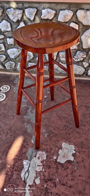 Nova hrastova retro barska stolica visine 78cm za 55 eura prodajem. Osobno preuzimanje u Rijeci ( Drenova)