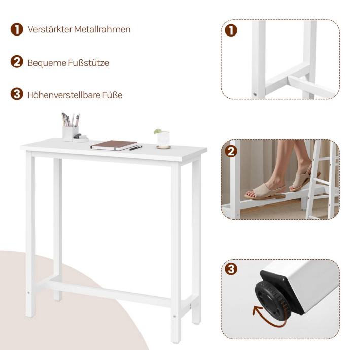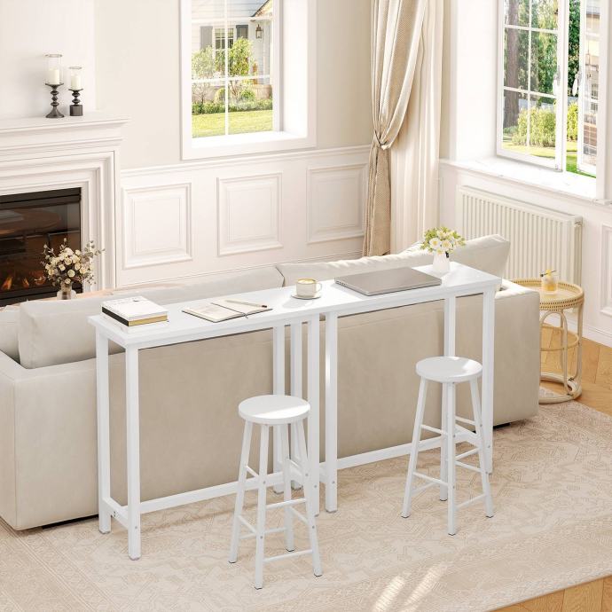 Ovaj barski stol nudi optimalnu visinu i dovoljno prostora za ugodno sjedenje, kompatibilan s većinom standardnih barskih stolica. Robusna konstrukcija od metalnog okvira i kvalitetnih drvenih panela pruža stabilnost i izdržljivost, s maksimalnim opterećenjem do 150 kg, idealan za svakodnevnu upotrebu u kuhinji, baru, kafiću ili kod kuće.