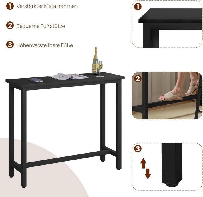 Ovaj barski stol nudi ergonomsku visinu i dovoljno prostora za udobno sjedenje više osoba. Visina stola idealna je za standardne barske stolice, pružajući ugodnu poziciju za rad, objedovanje ili druženje.