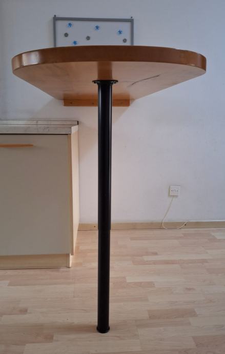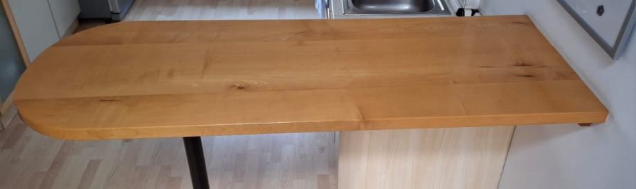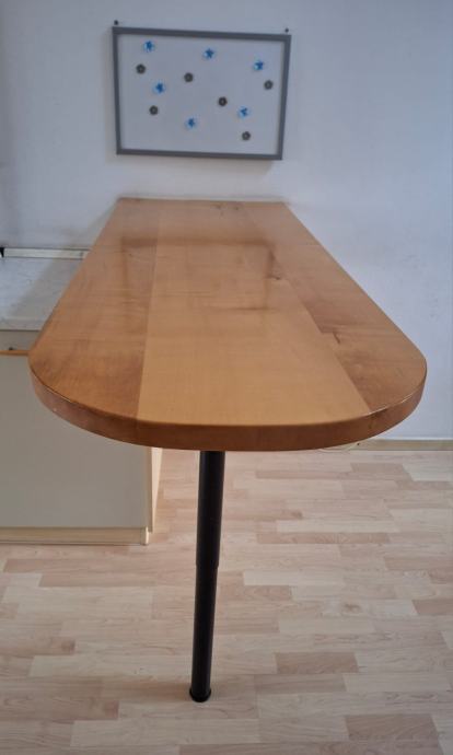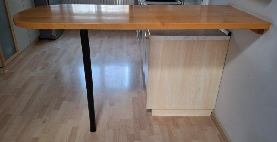 Prodajem drveni šank za kuhinju s metalnom crnom nogom podesive visine. Dimenzije plohe 160 cm x 60 cm.